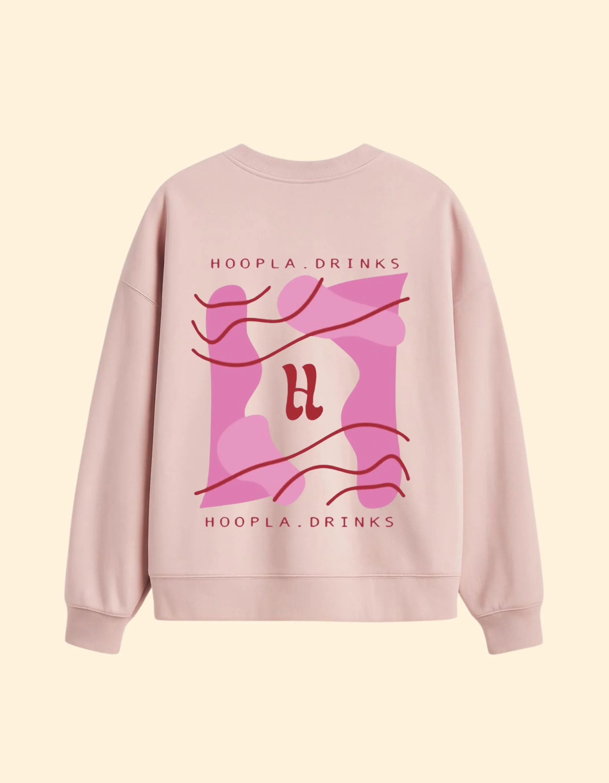 Een echte eyecatcher: de roze Hoopla Drinks Sweater met groot, artistiek design op de rug. Gemaakt van zacht katoen en ontworpen voor ultiem comfort met een vrolijke uitstraling.