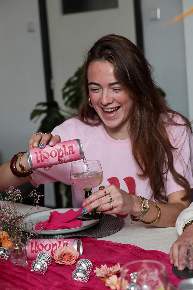 Laat je liefde voor Hoopla zien met dit stijlvolle T-shirt. Het shirt heeft een zachte lila kleur en is voorzien van een opvallende, artistieke ‘Hoopla . Drinks’ print op de rug. Gemaakt van comfortabel materiaal, ideaal voor elke dag.